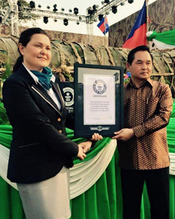 “The 4.04-tonne cake took 45 hours to cook, the giant sticky rice cake, made to celebrate the Angkor Sankranta Festival 2015 (in Siem Reap City), was included in the Guinness World Records in the afternoon of April 13, 2015 by a Guinness World Records judge," the Cambodian Chef Association, which made the cake, announced. Sokha Angkor’ Executive Chef which was part of the Chef Association is proud to see this great achievement!